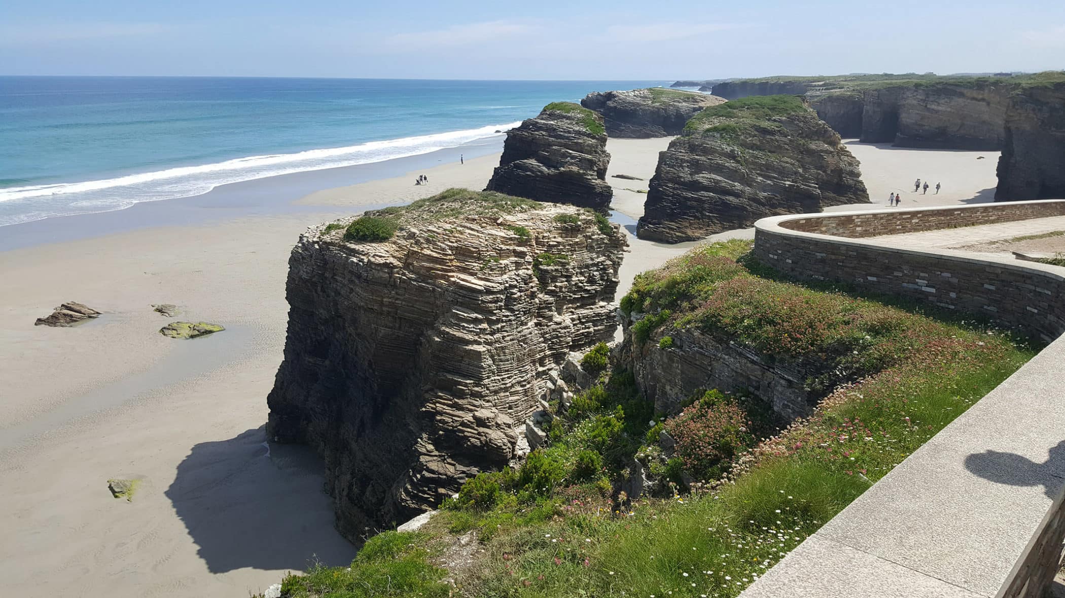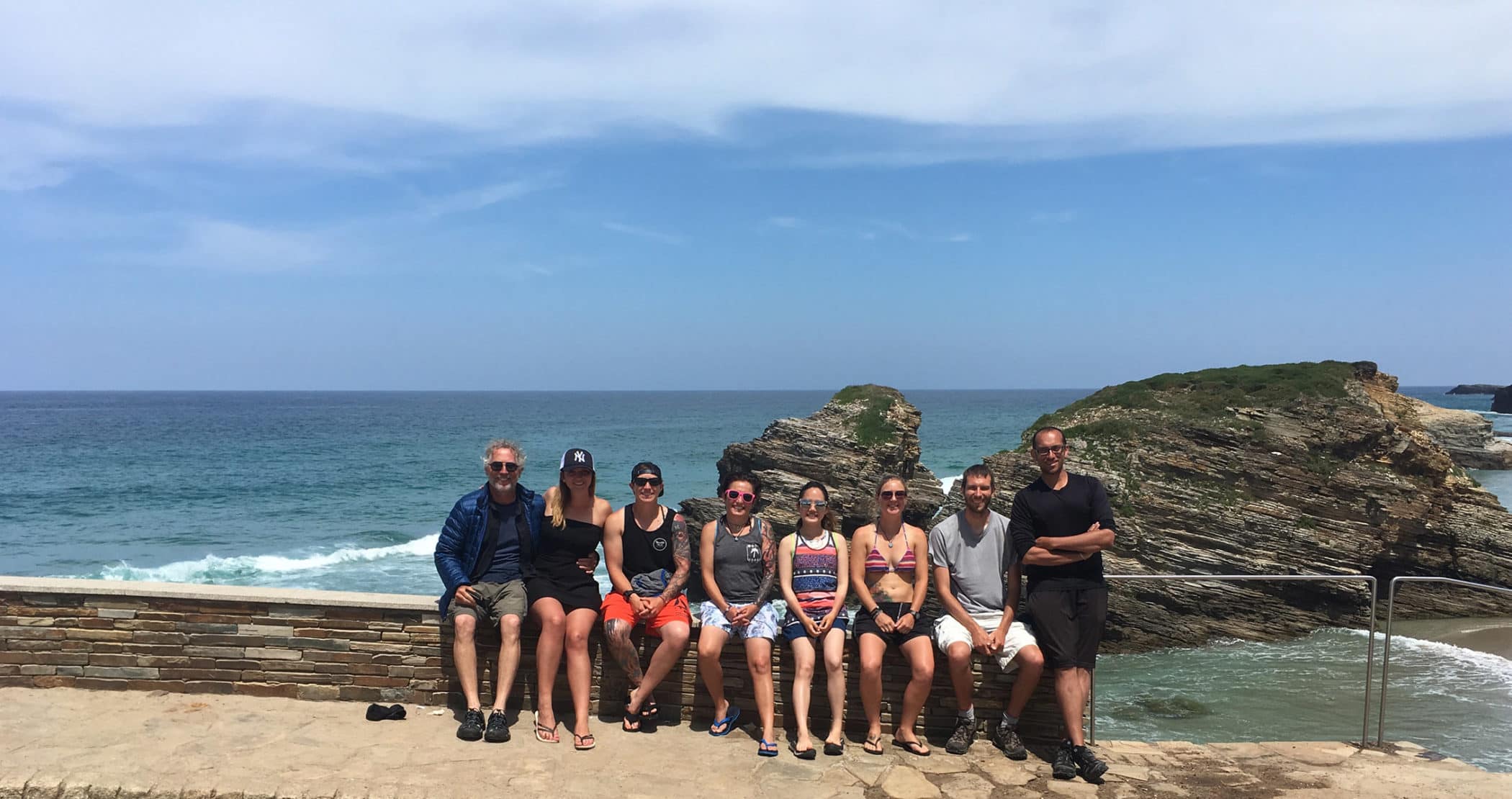 The next day we all went to a truly special place, the As Catedrais beach. It’s a remarkable place where, during low tide, the waters retreat so low that you can walk beneath all kinds of brilliant rock formations. On those rocks we could see all kinds of sea life including mussels, crabs, and lots of other shellfish. In the little pools that remained were families of brine shrimp and countless other creatures. You could also climb to the top of the rock formations for some great views and photo ops. It was a truly spectacular place. We all got a chance to go swimming, and had a great time as we got ready to say goodbye to the beautiful northern Spanish coast. Tomorrow, we turn south and inland for a final weeklong push to Santiago.