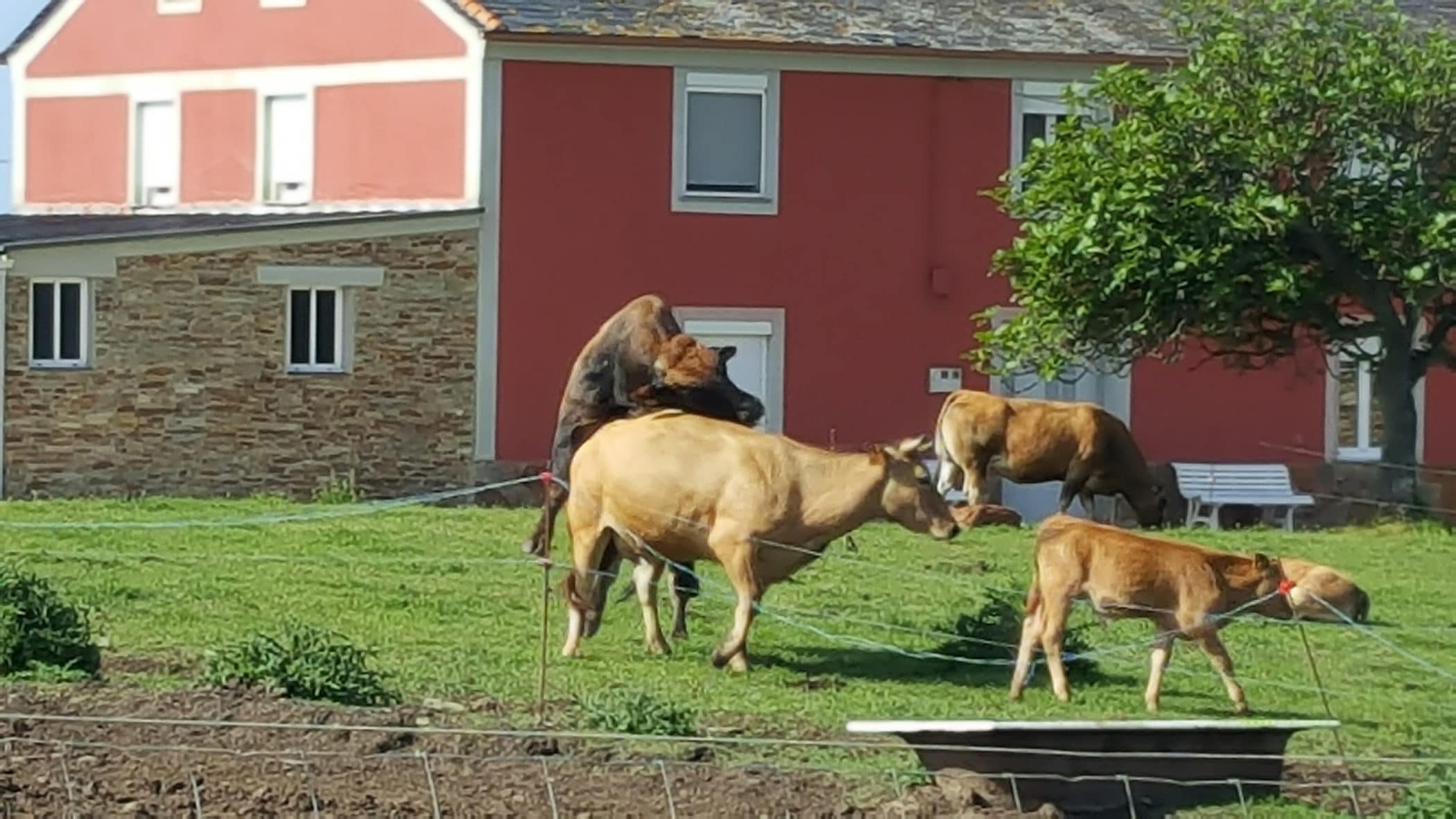 Of course our beach trip was not without its… interesting points. We took a train to get from Ribadeo to the beach, which is about 5 miles outside town. The train station was in the middle of nowhere. We exited the train to a 10-foot long platform surrounded by farms. There was nothing connecting it to the road, nearly a half-mile away! What the heck? And it got even better on our return journey. While waiting for the train to take us back to Ribadeo, we saw a real-life nature documentary unfold right in front of us: a bull decided to make amore to a cow. Right next to the train platform. The Camino continues to astonish.