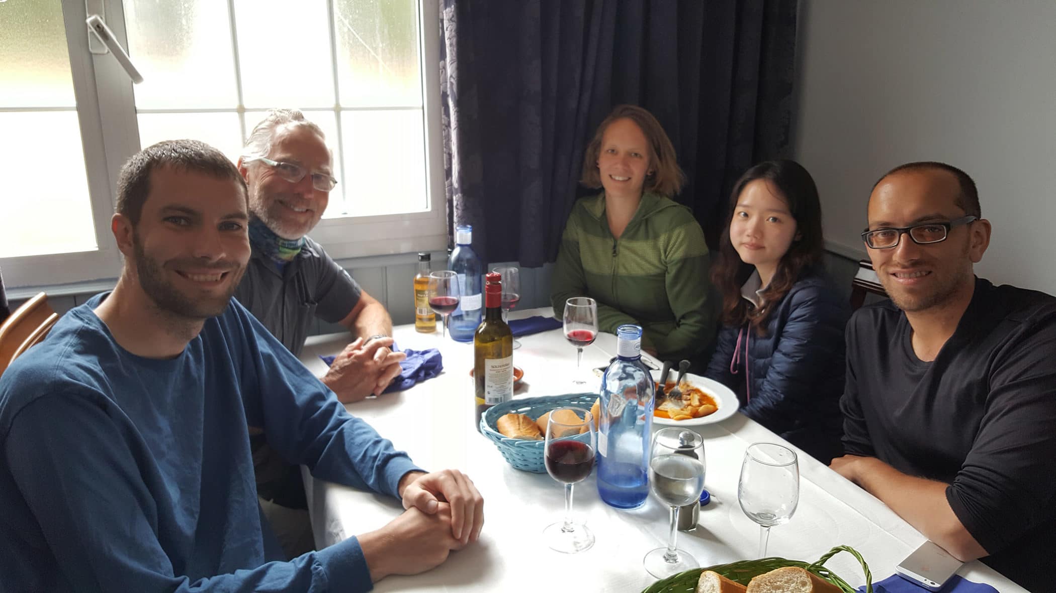 I wasn’t sure where others were as I was walking solo. But, Joe called me before I had gone too far and told me that a large bunch were back in Pobeña. So I backtracked, joined them, dried off, and so it was another short day. If you can spare the extra euros, it’s always worth picking up a Spanish SIM card, which allows you to call ahead for accommodations, and stay in touch with your trailmates. After a nice lunch with David, Joe, Keith, and 2 new friends, Katharina and Wooju, and a walk on the beach (that ice cold ocean water will heal any muscle pains), I decided to take some shelter from the rain and rest up for the day. Onward tomorrow!