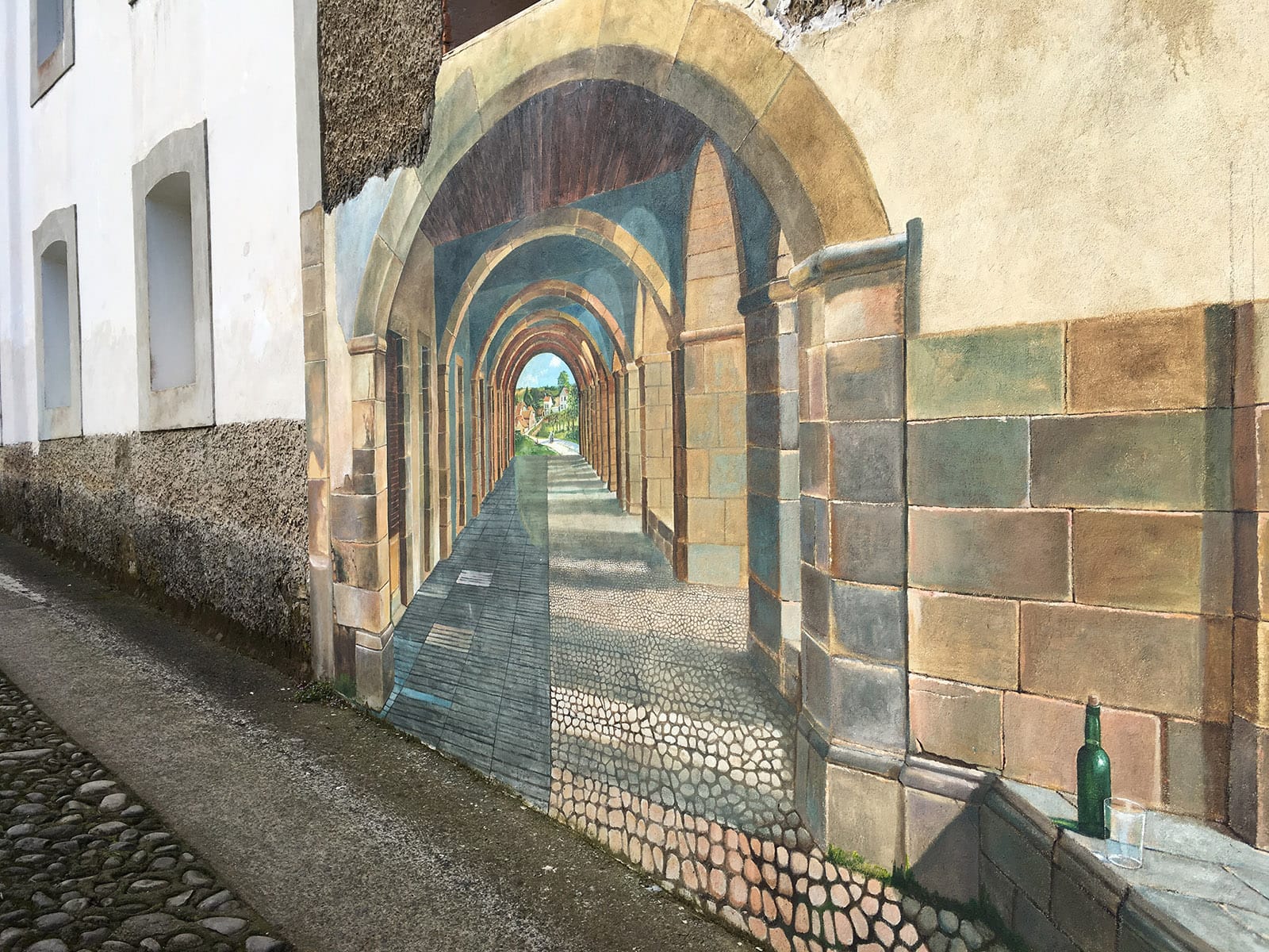 The day was great. It began with a beautiful exit from Ribadesella and through rolling hills until we had breakfast at La Tiendina de Vega in a village called, you guessed it, Vega. A couple houses on the town had great murals, and I continue to be impressed by all the artwork and small details that one might miss when just driving through places like this. There, we also met a huge group of Irish travelers – a few students and some of their relatives – on a university trip led by the college chaplain. He and his wife had always wanted to hike the Camino, but never found the time. Then in 2001 they suggested that, given its religious significance, it might be an interesting trip for students. So, they’ve gotten to do a 7-10 day Camino every year for the last 16 years – AND be paid for it! I gotta figure out a scheme like that. Anyway they learned it was my birthday and they all burst out into song, which was awesome!