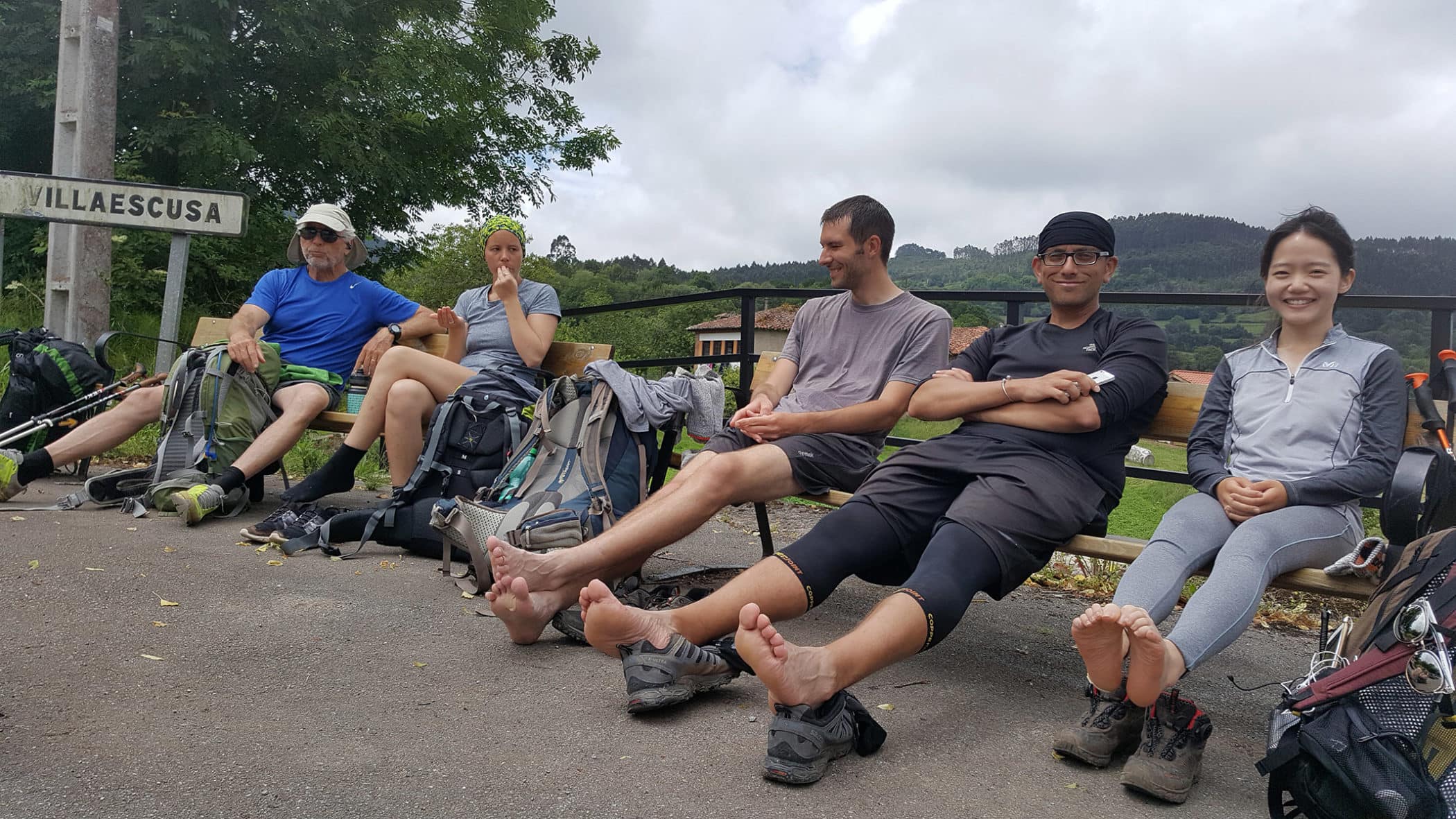 A few hours later, after seaside hiking with beautiful views, we broke for lunch at a great beachfront bar right outside La Isla. But then came an endless stretch that brought our day from 12 to 28 miles. Whooo it was long! But one thing that’s absolutely amazing about the Camino, is you often discover strength you didn’t know you had. On the trail it’s boosts of physical strength that give you the juice you need to trudge onward a few miles more. Once you get home you realize just how much you can accomplish if you just commit and persevere. We often say “the Camino provides,” as you somehow find what you need at opportune moments. But the Camino surely strengthens also. And David and I felt that boost towards the end of the day. We high-fived each other as we arrived into Villaviciosa, proud of one massive accomplishment.
