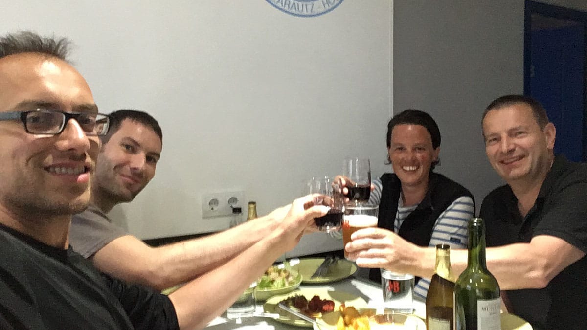 We’re slowly getting our “sea legs.” The steep and long climb out of San Sebastián was more manageable than yesterday’s climbing, and the length was similar but more tolerable. The day was long but lovely, with great views of bright blue sea, quiet paths through forests, picturesque farms with grazing horses, and the lovely towns of Orio, (which we’ve lovingly called “Oreo” for laughs) and Zarautz (similarly, “Zarathustra”). For dinner, I took a page out of John‘s book and did some Camino chef work. Our albergue had no stove, only a toaster oven to work with, but our dinner with new friends Géraldine and Richard nevertheless turned out amazing.