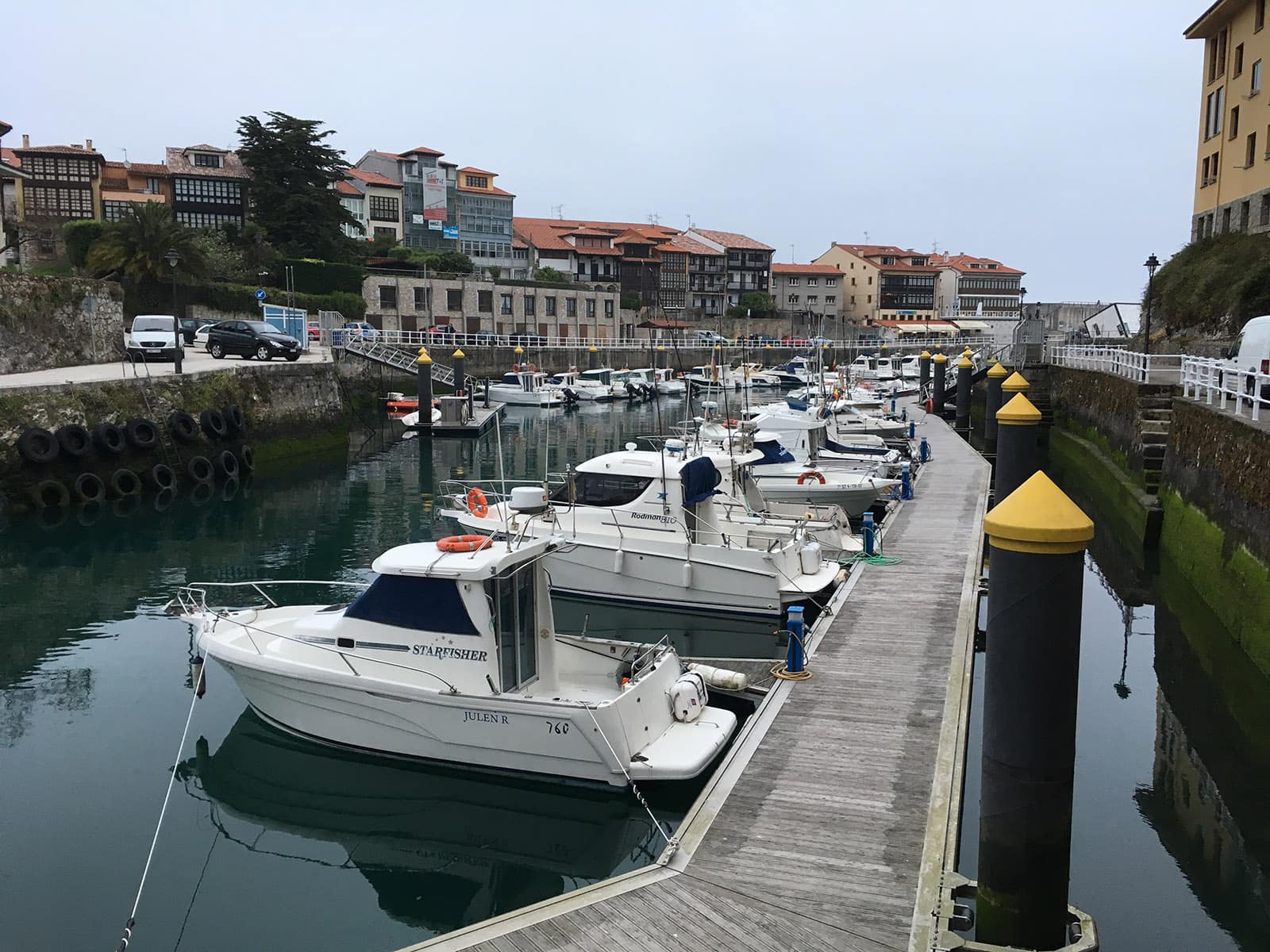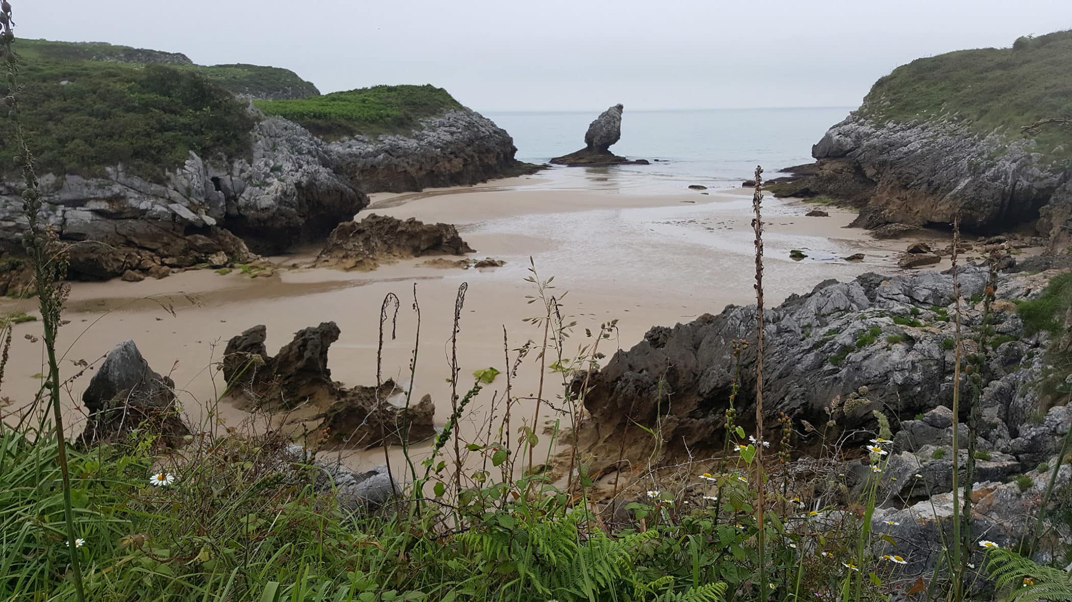 Man, today was a doozy. We all woke up at 5:30 or 6:00am, so we could make it to Bar Gloria for an earrrrrly morning breakfast before beginning a long 25mi trudge in the hope to arrive in Llanes by 5pm before some rain we saw in the forecast. The day started off pleasant enough, with forest paths and a few nice bridges – including one at the end of Unquera that officially marked our departure from the province of Cantabria and entry into Asturias. After a steep climb into beautiful Colombres, we descended towards Pendueles where we broke for a great lunch.